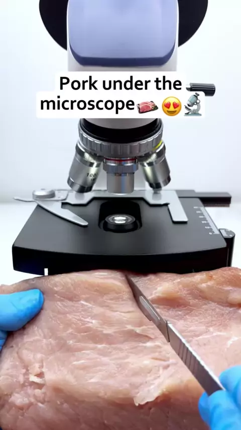 Você ainda comeria carne de porco depois de vê-la ampliada 400 vezes sob um microscópio? # microscope # undermicroscope # #