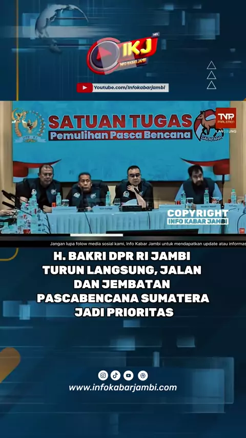 Pemulihan pascabencana di wilayah Sumatera terus dikebut. Anggota Komisi V DPR RI, H. Bakri, menghadiri rapat koordinasi tingkat tinggi bersama DPR RI dan para menteri guna memastikan penanganan bencana berjalan cepat, terarah, dan tepat sasaran. Rapat yang dipimpin langsung oleh Wakil Ketua DPR RI Sufmi Dasco Ahmad ini membahas percepatan pembangunan jalan, jembatan, serta fasilitas publik yang rusak akibat bencana. Tidak hanya fokus pada infrastruktur, pemulihan juga diarahkan melalui program...