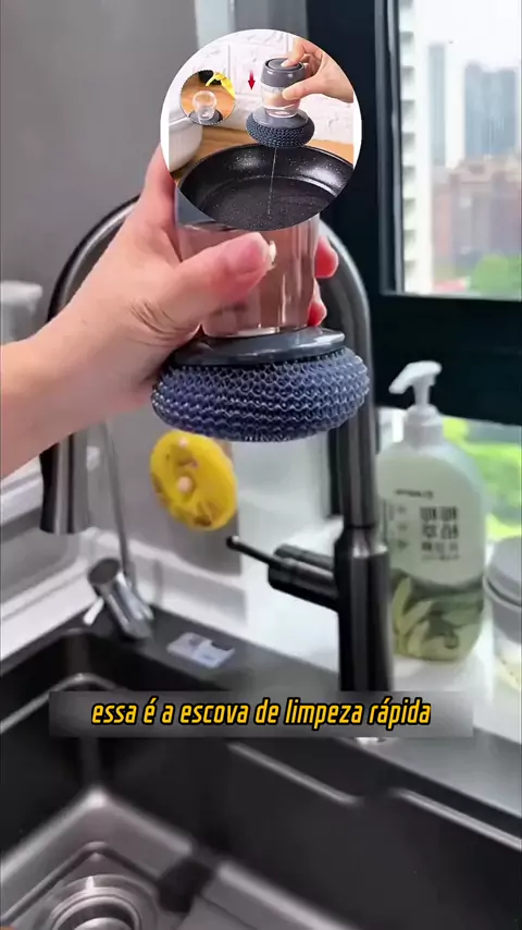 Escova de Aço Multiuso com Dispenser Porta Detergente Para Lavar Louça.
