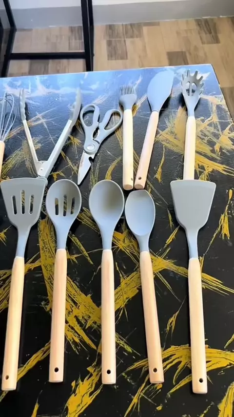 Kit de Utensílios de Cozinha 19 Peças. completo em silicone e bambu. #cozinha #silicone #kit #bambu #kwaishop
