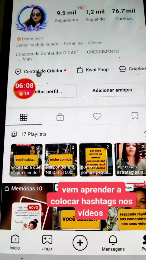 vem aprender a colocar hashtags nos vídeos #dicas #maisviews #viraliza