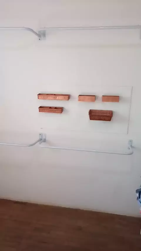 Montei um mini Closet com 4 araras de parede, 2 tábuas e um nicho antigo de cozinha 🤩 #diy #closet #roomdecor #facavocemesmo #Organização