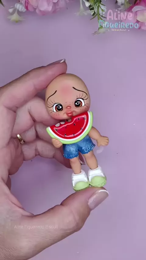 Summer sweetness ๐Ÿ‰โœจ Uma bonequinha de biscuit ,feita com carinho em cada detalhe. . #biscuit #handmadeart #dollart #feitoamao #cute