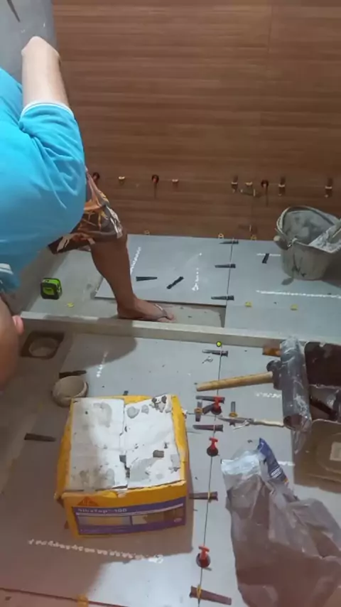 colocando piso no chão do banheiro #melhorversao #oqueéfelicidade #porcelanato