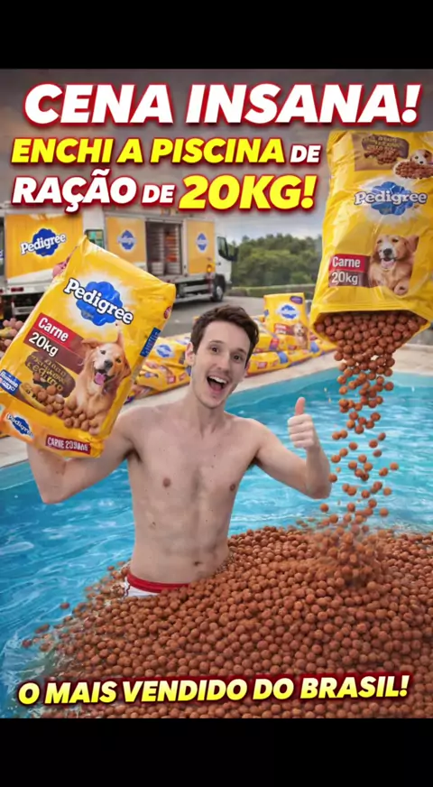 Eu fiz uma loucura… 😳 Resolvi encher uma piscina inteira com ração de 20kg sabor carne! 🐶🔥 Será que dá pra acreditar nisso ou eu exagerei dessa vez? Comenta aqui embaixo: você teria coragem de pular nessa piscina também ou não? 😂👇 Quero ver quem realmente assistiu até o final! #ração #pedigree #desafio #viral #piscina