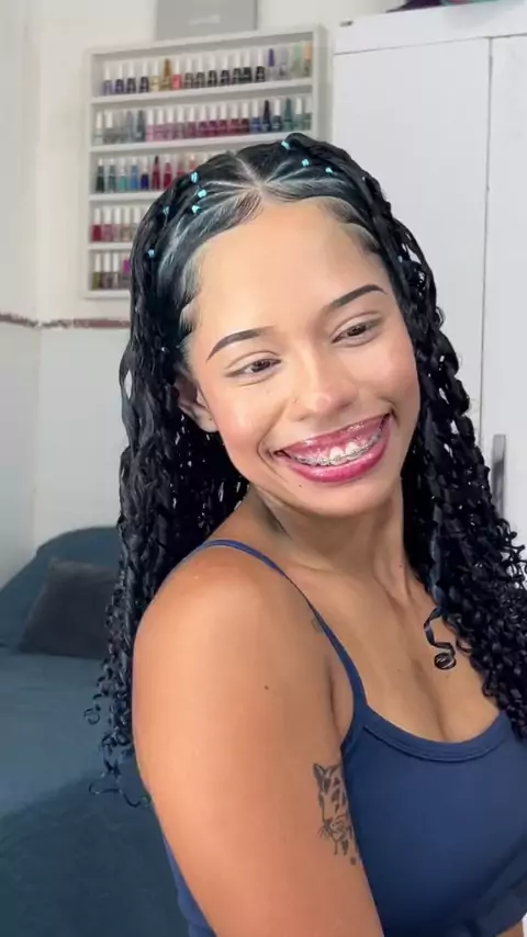 PRIMEIRO PENTEADO COM O CABELO AZUL! 💙 #baoprakwai #QuituteJunino #viraliza #TeleNamorados #cabelocacheado