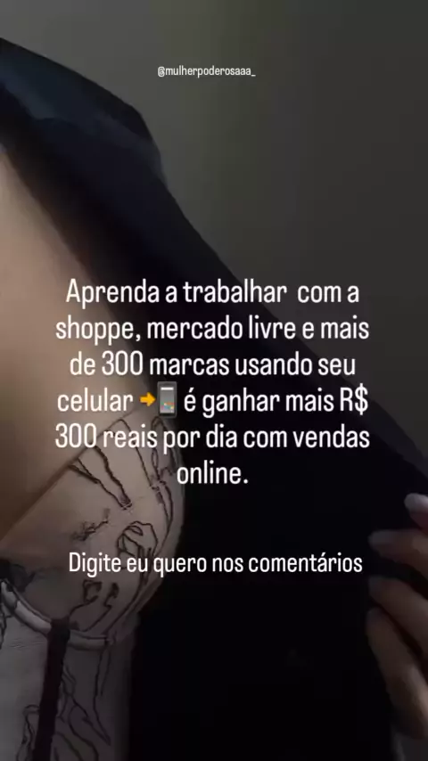 Presta atenção nessa mensagem🔥 aprenda a trabalhar com a shoppe e mais de 300 marcas usando seu celular 📲 é ganhar mais R$ 300 reais por dia com vendas online. VENHA TER A SUA LIBERDADE FINANCEIRA🔥 DIGITE EU QUERO Assista os stories🔥 Curte 🔥 Comente 🗣 Compartilhe 👥 Siga 👉 @mulherpoderosaaa_