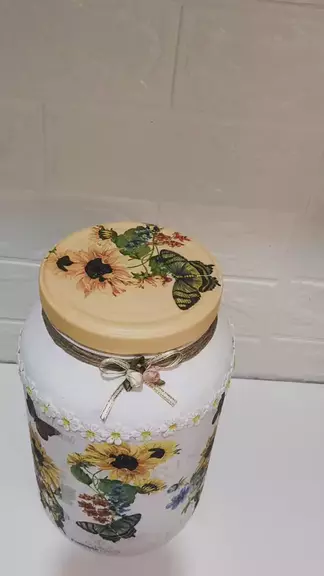 Pote de vidro decorado artesanalmente, Versátil, pode ser utilizado como porta-mantimentos, pote para ração ou guloseimas de pets, gostou? Me segue para mais dicas. #alzeniralves #diydecor #decoupageart #decoracaocriativa