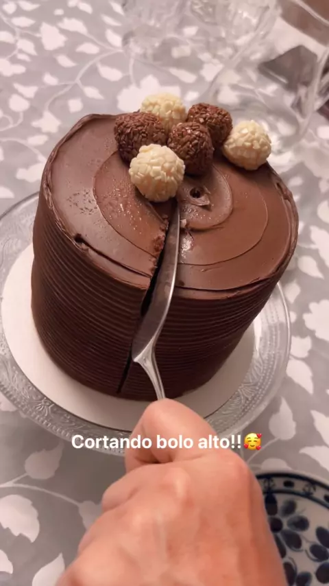 🥰🙏🏻Cortando um bolo alto e beeemmm chocolatudo!!!! #amandabeeke #boloalto #chocolatudo