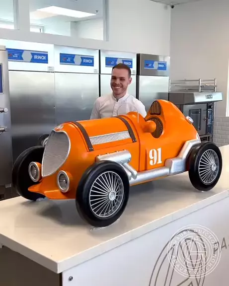 This super fun old school looking race car took me so long! 6 days in the making, it is 60inch long and 40 inch tall for an overall of 50lbs of dark chocolate. What's your favorite part? 🏎 🏁 If you are looking to learn my techniques and recipes you can enroll to one of the long term programs by applying through my website : #culinaria #chocolate #viral #viraliza #arte