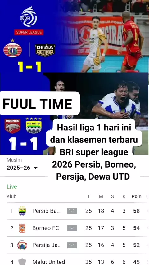 Hasil liga 1 hari ini dan klasemen terbaru BRI super league 2026 Persib, Borneo, Persija, Dewa UTD #sport #snackvidio #trend #persib #RamadanMubarak
