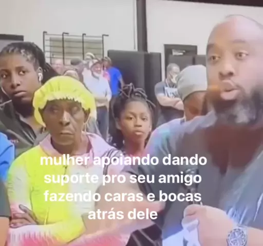 essa mulher apoiando dando suporte pro seu amigo fazendo caras e bocas atrás dele #viral #meme #engraçado #rir #piada