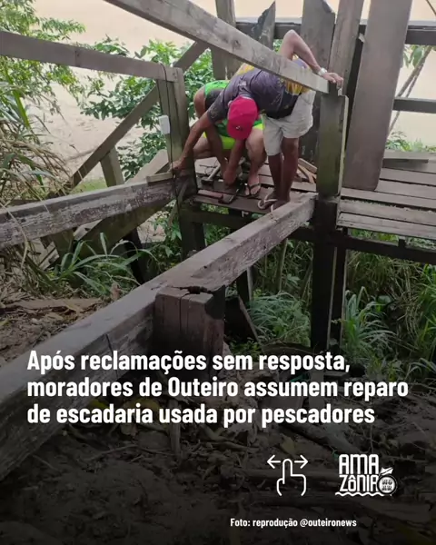 MANUTENÇÃO DOS MORADORES Moradores e pescadores de Outeiro decidiram consertar sozinhos a escada da Praia dos Artistas após, segundo denuncia dos próprios, várias tentativas sem resposta da Administração Regional de Outeiro (AROUT). A estrutura é essencial para o trabalho e o abastecimento da feirinha loca. 📷 Com imagens da denúncia enviada a página @outeironews #AmazôniaNoAr #Outeiro #denunicia