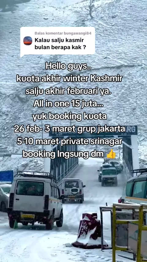 Membalas @mizuu052 booking yuk kuota winter terakhir guys๐Ÿ˜๐Ÿ˜š๐Ÿ‡ฎ๐Ÿ‡ณ๐Ÿ‡ฎ๐Ÿ‡ฉ#triangle #kashmir #bollywoodsong