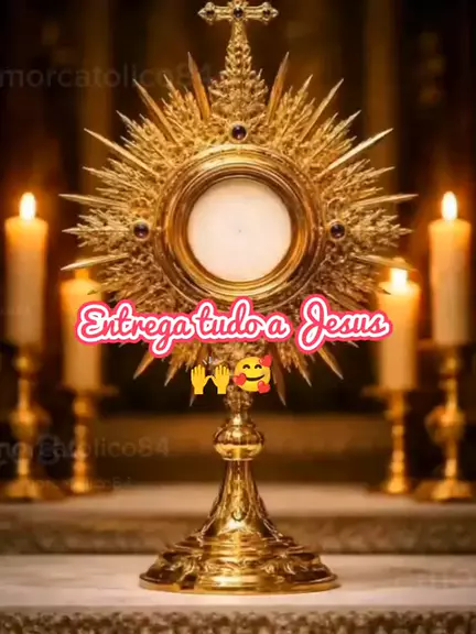 Diante do Santíssimo, entrego minhas dores, meus sonhos e minha vida. Tudo é Teu, Senhor. 💛 #AdoracaoAoSantissimo #EntregaTotal #JesusNoAltar #Fe #Oracao