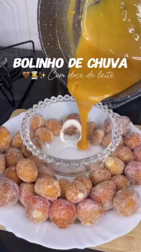 bolinho de chuva com doce de leite #maisviews #viraliza #churros #bolinho #Comida