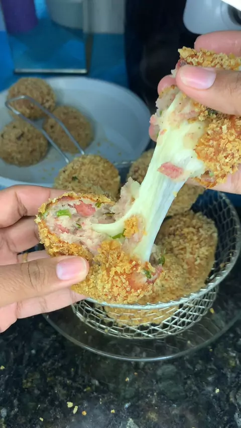 Bolinho de calabresa com queijo😋 Receita👇 400g de batatas 1 calabresa picada 1 xícara de farinha de trigo Tempero👇 Sal, pimenta do reino, chimichurri, cheiro verde agosto 200g de mussarela ‼️Passe óleo nas mão para abrir a massa Usei dois ovos , e farinha panko para empanar😋 #Salgado #bolinho #receitas #foryou #fyp