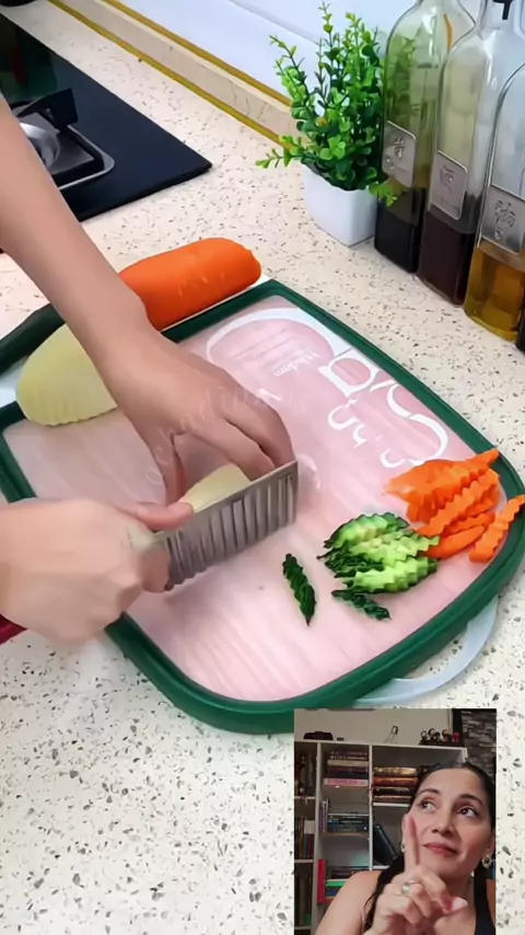 Super oferta! 🔥 Faca de corte ondulada em aço inox, para chips e legumes perfeitos! 🍟🥕 Compre agora! 🛒 #Delícia #ReceitaFácil #Gastronomia #FeitoComAmor #kwai