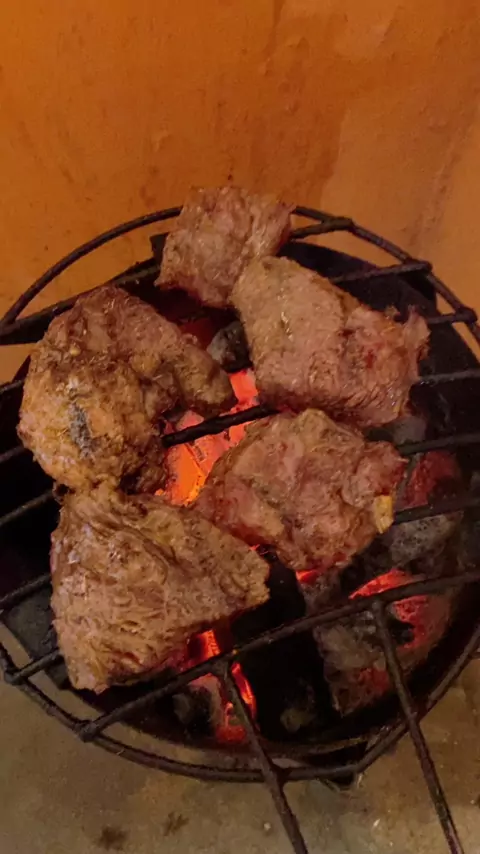 Arroz branquinho com carne de boi assada na brasa