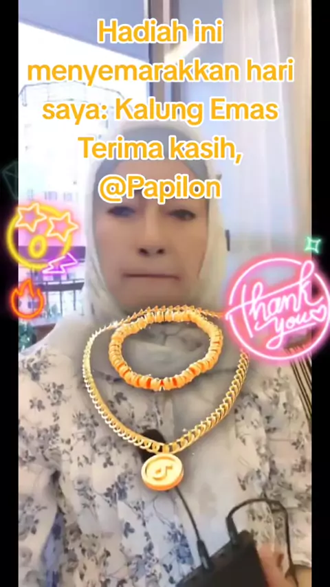 Terima kasih atas Hadiah luar biasa yang Anda kirim ke LIVE saya! Apresiasi Anda terhadap konten saya sangat berarti bagi saya. @Papilon #live #livehighlights #livegift #goldnecklace #kalungemas