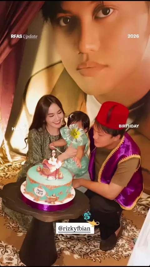 Happy birthday papa iky 🥳 selina cu banget jadi princess jasmine 😩🤏🏻 #rizkyfebian #mahaliniraharja #mahalini #selina #zaireeselinaquinlynkareemafebian