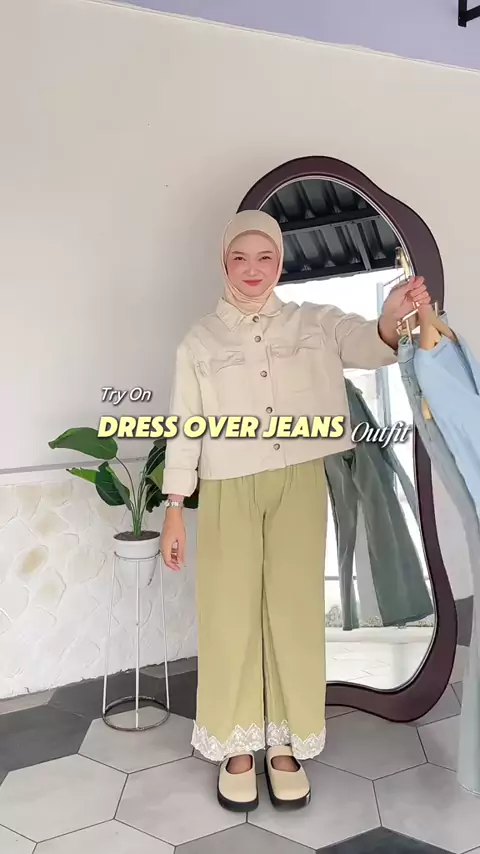 try on dress over jeanss🩵😆🤏🏻##outfitoftheday#rekomendasioutfit#tokobajupurwokerto#outfitinspiration#dressoverjeans#cuteoutfit#stylingtips#stylingoutfits