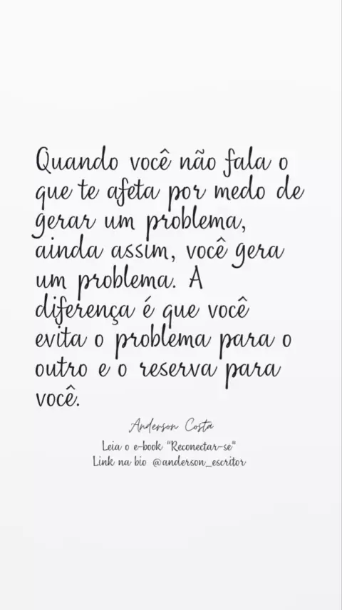 Transformo pensamentos e emoções em palavras. Meus livros digitais👇 📖 21 Dias p/Reconectar-se 📖 Como conviver com pessoas difíceis sem se desgastar. Ig: @andersoncostaeu