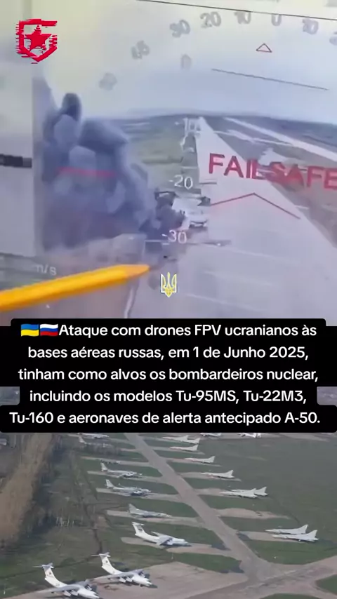 🇺🇦🇷🇺Ataque com drones FPV ucranianos às bases aéreas russas, em 1 de Junho 2025, tinham como alvos os bombardeiros nuclear, incluindo os modelos Tu-95MS, Tu-22M3, Tu-160 e aeronaves de alerta antecipado A-50.#ukraine#russia#usa_#viral#brasil#flypシ