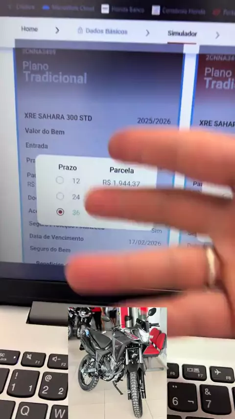 Simulação da Sahara 300 no financiamento! Me acompanha que depois solto no Consórcio também. O que achou? 👀💫 #honda #moto #sahara300 #financiamento