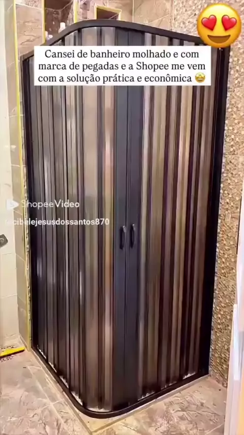 Box Para Banheiro de PVC 185x130cm Sanfonado Frontal BCF Preto