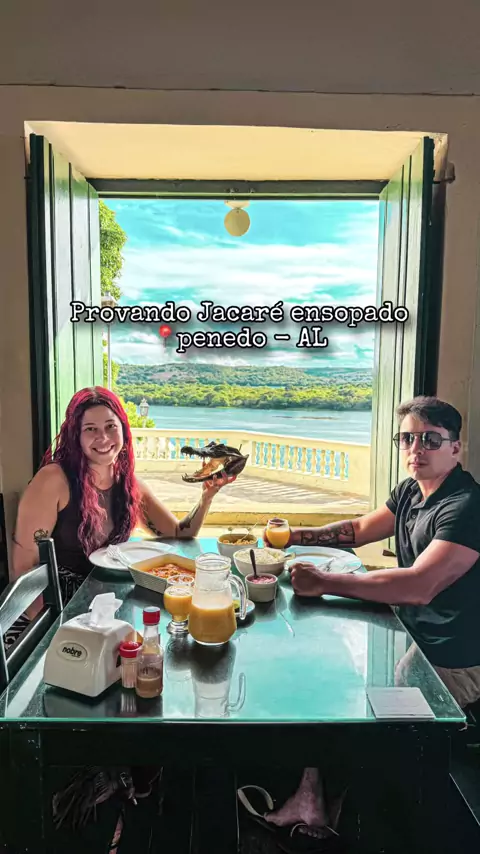 Tu teria coragem de provar carne de JACARÉ? Ou já provou? Pois bem… a gente provou esse prato típico lá em Penedo - AL, onde o jacaré ensopado é uma iguaria local, feita com todo cuidado e dentro da legalidade, com autorização do IBAMA! E olha… o sabor surpreende viu?! Tem gente que acha que parece frango, outros juram que lembra peixe. Na nossa experiência: é gostoso SIM! Se você comer sem saber, pensa fácil que é frango. Somos Nutella? Talvez. Achamos uma delícia no começo, mas no meio da ref