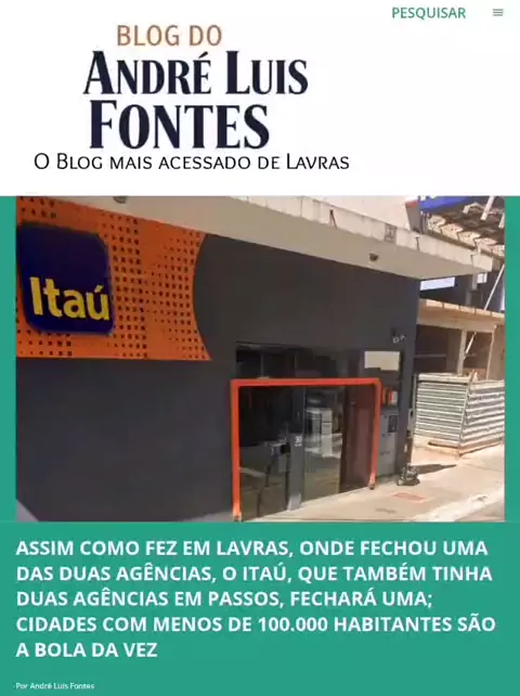 ASSIM COMO FEZ EM LAVRAS, ONDE FECHOU UMA DAS DUAS AGÊNCIAS, O ITAÚ, QUE TAMBÉM TINHA DUAS AGÊNCIAS EM PASSOS, FECHARÁ UMA; CIDADES COM MENOS DE 100.000 HABITANTES SÃO A BOLA DA VEZ Leia mais no link no perfil