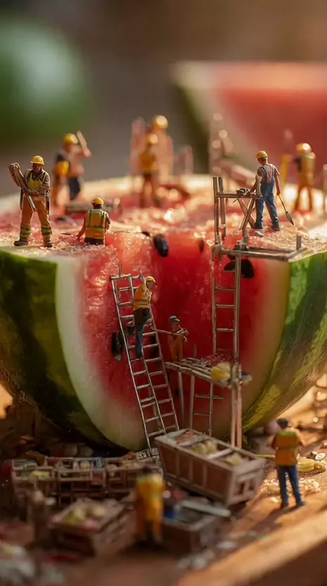 CONSTRUÇÃO SURPREENDENTE 🍉🚧 MINI OBRA DENTRO DE UMA MELANCIA!👷‍♂️🔨 #dicas