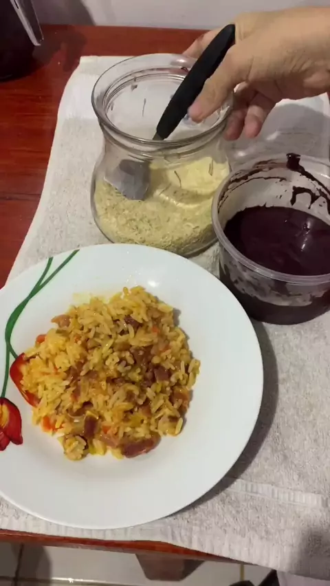 Sempre procuro compartilhar os sabores de nossa região. Hoje trago o açaí puro com farinha, acompanhado desse charque com arroz. Uma delicia!