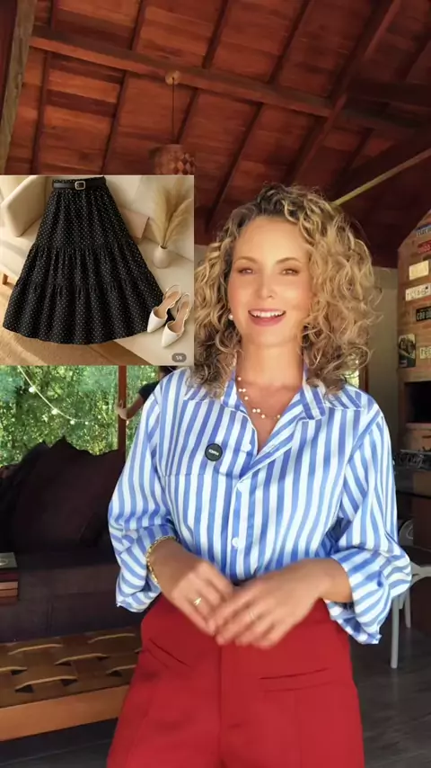 A saia listrada midi está de volta com tudo! 👗✨ Veja como usar essa tendência de forma elegante e moderna aos 40+. Qual dessas combinações você usaria? Me conta aqui👇🏼 #creatorsearchinsights #dicasdemoda #saiamidi #tendencia #fashiontips @andressa.fra @andressa.fra @andressa.fra