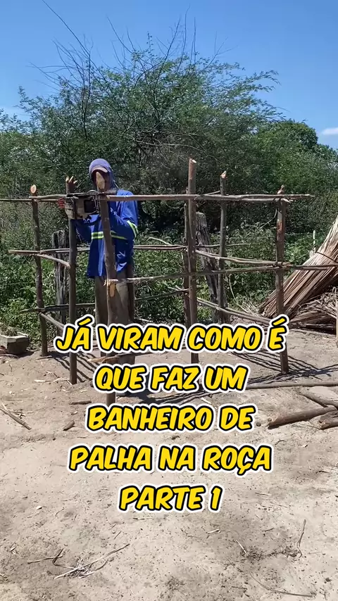 Já viram como é que faz um banheiro de palha na roça parte 1 #roça #trabalho #banheiro #kwai #viral