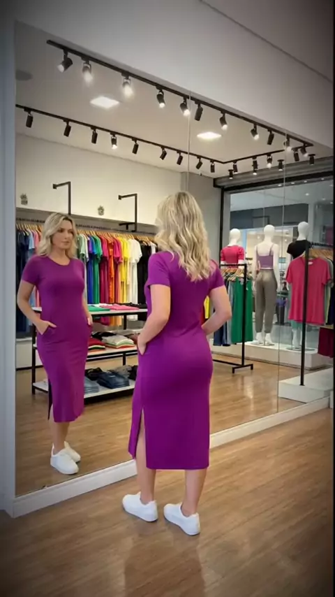 vestido midi com fenda lateral e bolso #2025internationalshortvideocompetition #modaevangélica #kwaishop #VestidoMidi