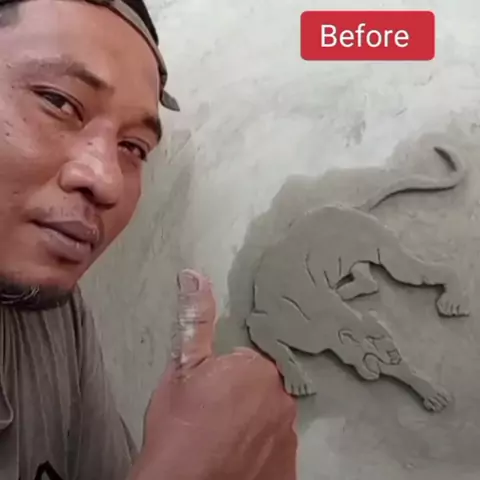 My cement leopard art picture (Before and after)