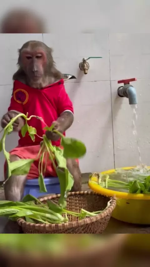 O Irmão Macaco lava legumes.
