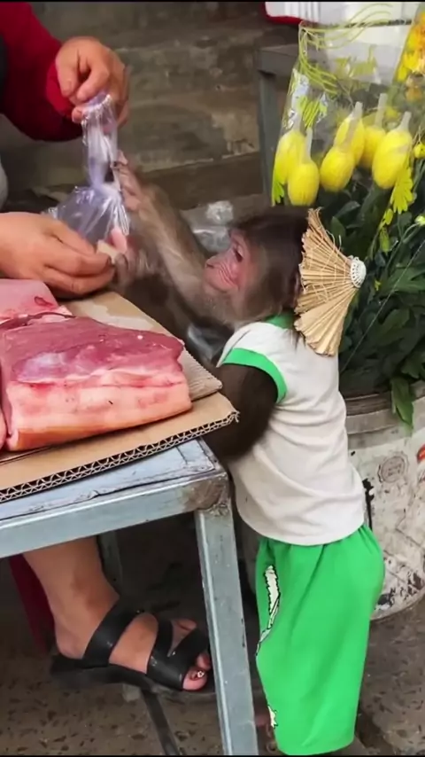 O irmão Macaco veio comprar carne.