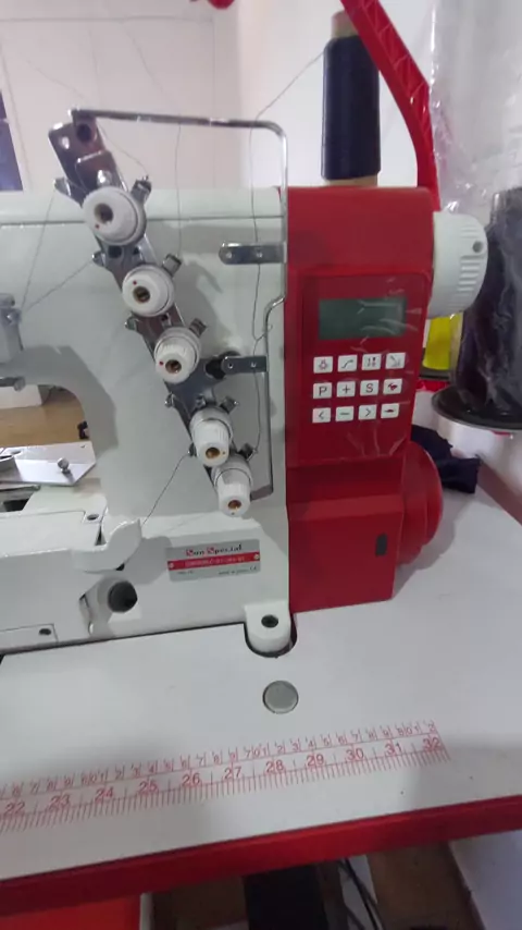 Galoneira seminova elgin direct drive, 3 agulhas, sistema de cobertura, base plana, posicionamento de agulha superior e inferior, sistema de velocidade, economia de energia de até 80% com relação ao motor convencional. 1 ano de garantia na nossa loja. #costura #maquinadecostura #atelier #costurar