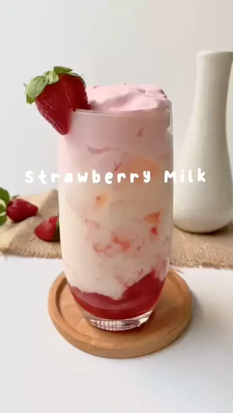Stroberi milk 🍓 #minuman #resep #fyp #segar