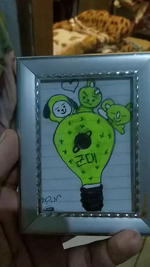sem nada pra fazer então decidi desenhar e sei que ficou feio mas pra mim tá bonito ta tudo de amarelo pq eu não tinha outras cores #ARMY #desenho