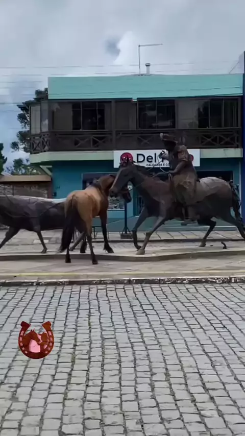 #Repost Méritos @tv.serrana 👏👏👏 Cavalos escapam e criam cena inusitada no centro de São Francisco de Paula. No último dia do ano de 2025, 31 de dezembro, uma cena inusitada tomou conta dos comentários nas redes sociais. Dois cavalos escaparam e foram até a Avenida Júlio de Castilhos, no centro de São Chico, onde tem diversos monumentos a céu aberto e escolheram uma delas para realizar um ato de como se estivesse brigando com outro cavalo , porém o do monumento era um cavalo de lata. Muitas...