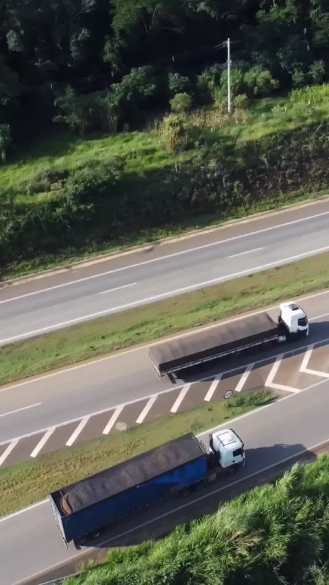 "Estradas, carretas e drones... uma combinação perfeita! 🚛🚁 Capturando duas carretas juntas com meu drone, e mostrando como a tecnologia pode ser incrível #drone #carretas #tecnologia #combinaçãoperfeita #dronesoporhobby