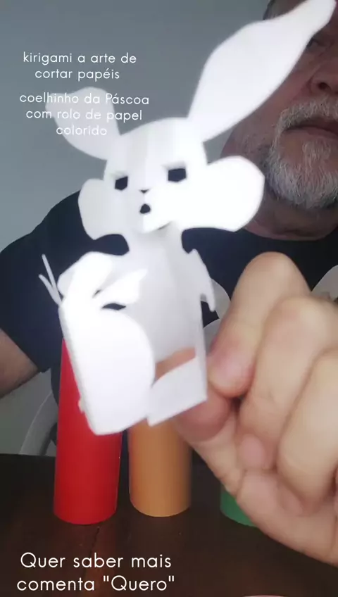 kirigami de coelhinho da Páscoa com ovo feito no rolo de papel colorido #pascoa #coelhinhodapascoa #coelho #origami #Professor