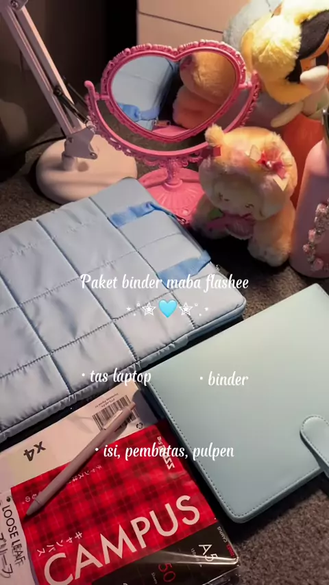 Paket binder maba flashee, udh dpt binder, isi & pembatas, pulpen, tas laptop ✨🩵 #binder #binderkuliah #bindernotebook #binderaesthetic #bindera5