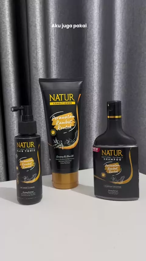 Natur Hair Tonic Ginseng menggunakan bahan alami ekstrak ginseng tanpa tambahan alkohol jadi aman untuk kulit sensitif @Natur #KuatdariAkar #CegahRontok #RambutLembut #KuatAlami #NaturHairCare #Conditioner