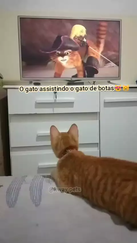 #𖣘kway #pets🥰❤ o gatinho assistindo o gato de botas ❤️