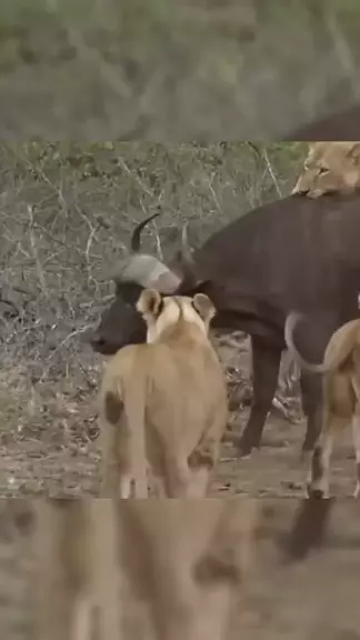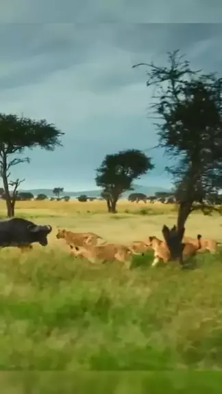 Um Búfalo É Atacado Por Um Grupo De Leões Famintos #BAIYUN9 #animais #animaisselvagens #leao #leoesbufalos